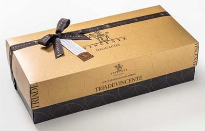 Un panettone al pistacchio, uno alle mandorle e uno ai frutti di bosco (500 gr a panettone). Una crema al pistacchio di Bronte, una crema alle nocciole di Sicilia e crema al cioccolato bianco (90 gr a vasetto). Tutto nel cofanetto regalo.